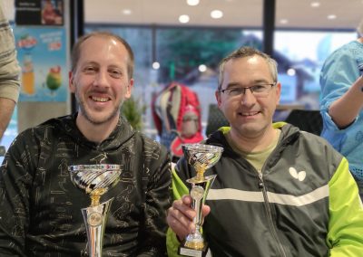 Opkomende spelers zoals Gianluca, Stéphane en Jean-Christophe bereikten respectievelijk de kwart en halve finales! Na vele spannende sets en enkele fantastische punten werd de finale gespeeld tussen Joost en Johan. Het publiek genoot van enkele mooie punten maar na 3 sets moest Johan zijn meerdere erkennen in Joost.